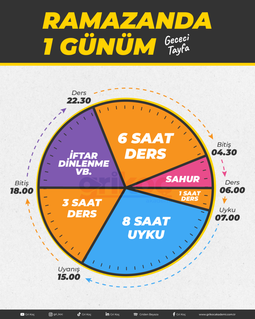 Ramazan ayı, oruç tutulan bir ay olduğu için uyku düzeniniz değişebilir. Uyku düzeninizi düzenlemek için, iftar ve sahur arasında yeterli uyku çekmeye çalışın. Uyku düzeninizi düzenlemek, bedensel ve ruhsal olarak kendinizi daha iyi hissetmenize yardımcı olacaktır.